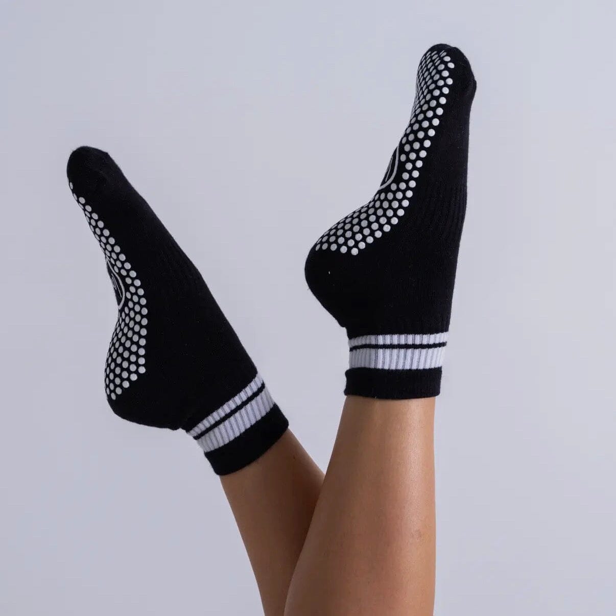Oplev den perfekte balance mellem komfort og stabilitet med vores reformer strømper i sort med hvide detaljer